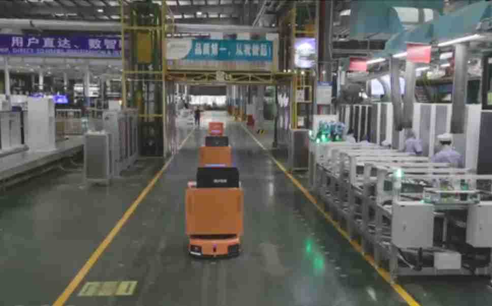 为车载冰箱物流配送打造的智能解决方案,,包含产中物流通过潜伏举升AMR搬运至线边,,,产后成品物流智能仓储,,,,流程包含产中物流智能齐套入库,,,,线边安灯叫料AMR智能配送至线边,,,成品入库、、出库,,,通过无人堆高车机器人,,,智能仓储管理替代人工作业管理,,,实现更高存储、、、、更高效率、、、更具柔性化的解决方案。。