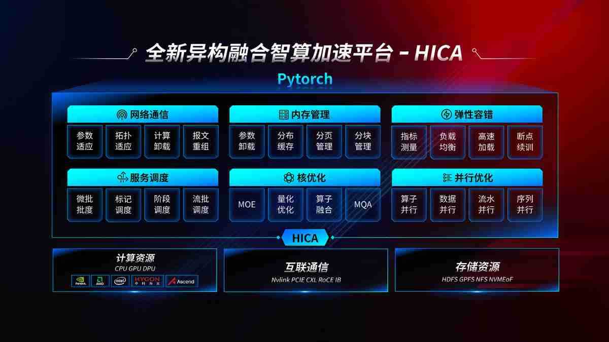通过自研的服务层、、、、中间适配层、、以及调度编排算法,,,,采用数据并行、、、模型并行等多种并行方式,,,,把并行计算任务进行有效的分解,,,,使其分别由相应的软件栈和算力资源来承接。。。。当GPU资源变化,,,,HICA可以实时动态调度计算子任务并调整模型拓扑和架构,,,,以充分聚合各种算力资源。。。。